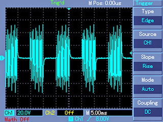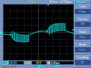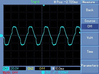 Output Waveform across Transformer Mains Output (220V)The following images show the various waveform images taken from across the output mains winding of the transformer.