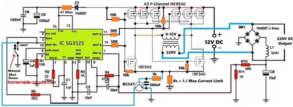 In this post we try to investigate how to design a SG3525 full bridge inverter circuit by applying an external bootstrap circuit in the design. The idea was requested by Mr. Mr. Abdul, and many other avid readers of this website. Audio/Video Representation Why Full-Bridge Inverter Circuit is not Easy Whenever we think of a […]