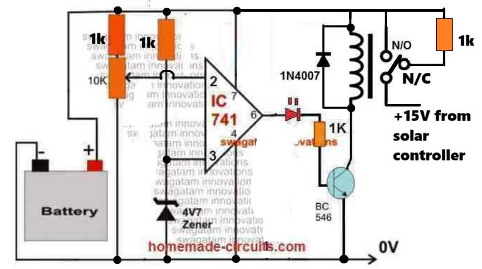 The 1 K presets allow the user to fine-tune the full charge level to the preferred precise value. In case the maximum default value fails to reach the recommended levels of 14.1 V and 7 V, the user may add an additional rectifier diode with the existing D7, D8 or D9 diodes, and then tweak the 1K presets until the exact output full charge level is determined.