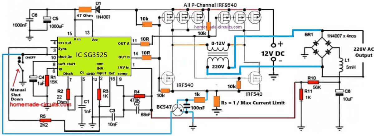(https://www.homemade-circuits.com/2017/03/sg3525-full-bridge-inverter-circuit.html),