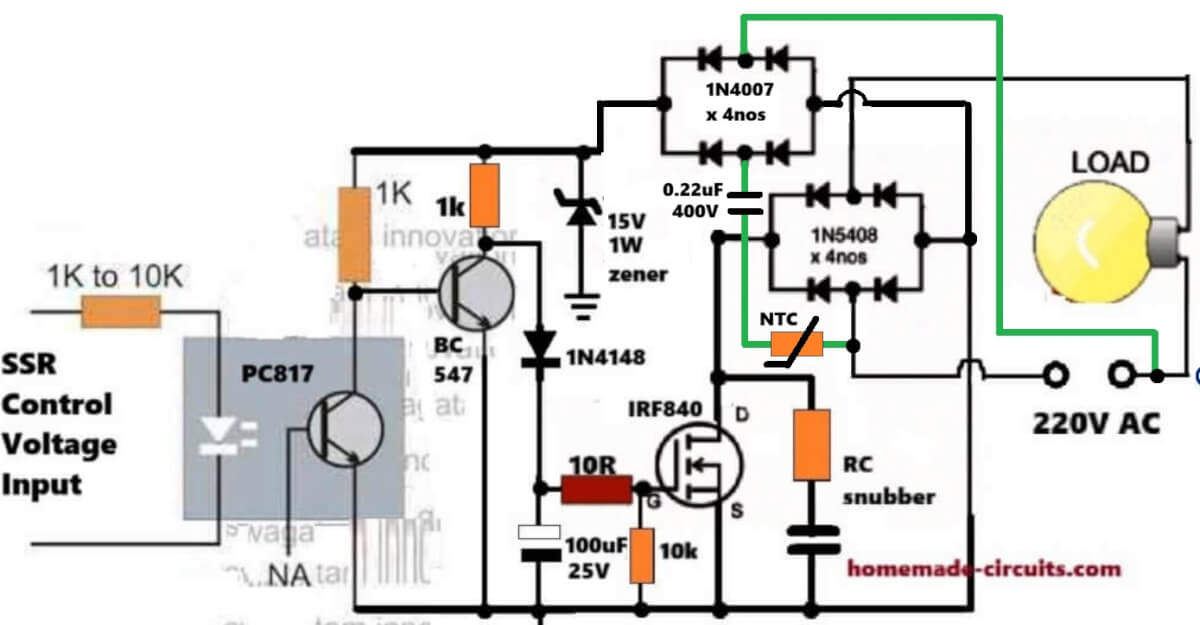 - T1 = any NPN power BJT such as TIP31, 2N2222, 8050 or BC139 (on heatsink)