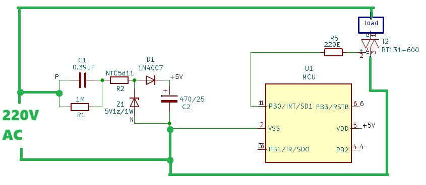 However, when switch S1 is closed, it operates as a closed switch which is powered from the mains AC line via the load and R1 right at the start of each AC half-cycle.