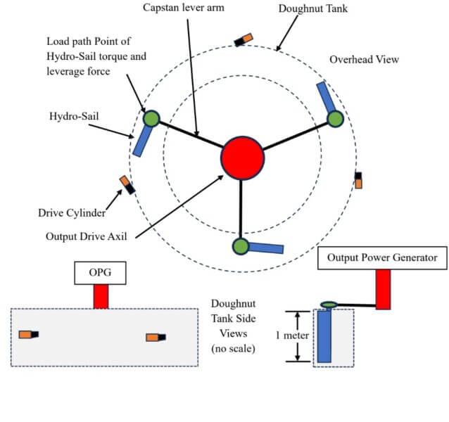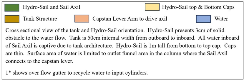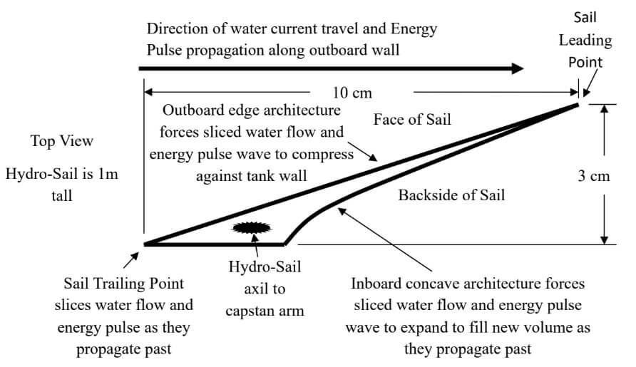 For the following conceptual diagram, I am using dimensions and areas and volumes, etc. The physics cloud that appears around the Hydro-Sail is complex and a challenge to the PhDs I discussed this with, I might add.